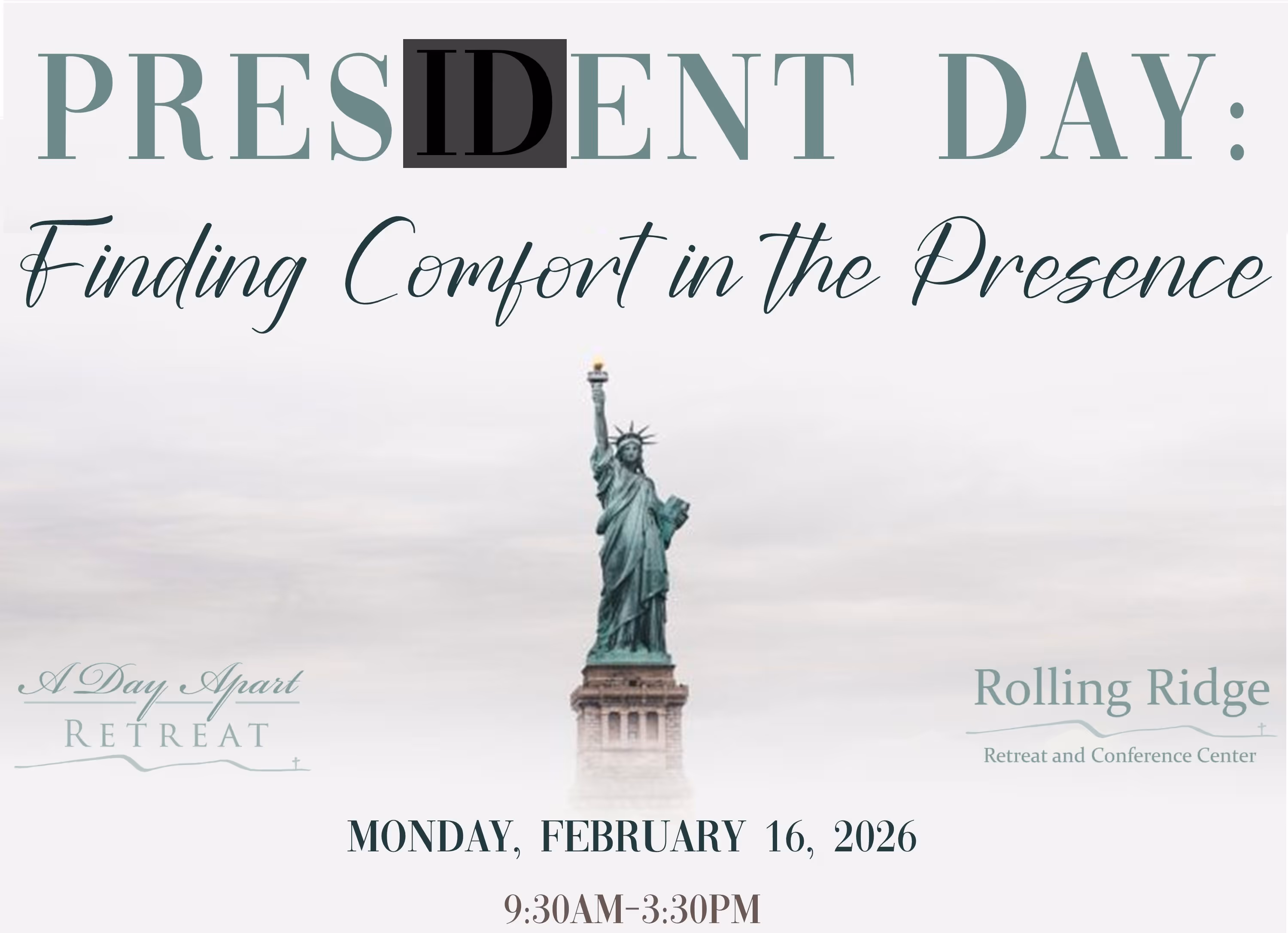 we invite you to join us on President's Day, February 16th, for Present Day: Finding Comfort in the Presence.
